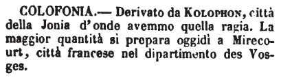 | Cambiando una lettera sola si può ottenere: colofonie. |