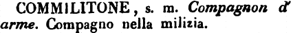 | Commilitone - s. m. Compagnon d'arme. Compagno nella milizia. [immagine] |