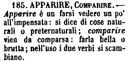 | »» Vedi anche la pagina frasi con comparire per una lista di esempi. |