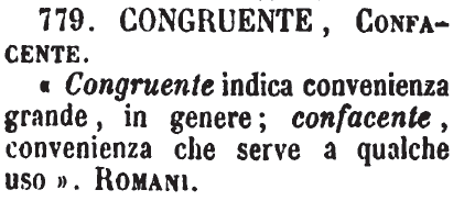 | Congruente, Confacente - «Congruente indica convenienza grande, in genere; confacente, convenienza che serve a qualche uso». Romani. [immagine] |