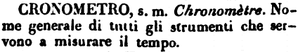 | Cronometro - s.m. Chronomètre. Nome generale di tutti gli strumenti che servono a misurare il tempo. [immagine] |