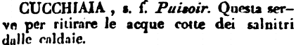 | Cucchiaia - s. f. Puisoir. Questa serve per ritirare le acque cotte dei salnitri dalle caldaie. [immagine] |
