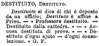| Usando "destituito" (*) si possono ottenere i seguenti risultati: * precostituito = depreco; * voto = destituivo; * remoto = destituiremo. |