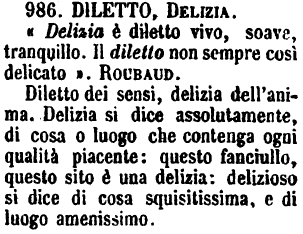 | Diletto, Delizia - «Delizia è diletto vivo, soave, tranquillo. Il diletto non sempre così delicato». Roubaud.