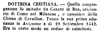 | Dottrina cristiana - Quella congregazione fu istituita da Cesare di Bus, originario di Como nel Milanese, e canonico della Chiesa di Cavaillon. Tenne la sua prima adunanza in Avignone a dì 29 Settembre 1542. Era in certo modo un ordine di catechisti. [immagine] |