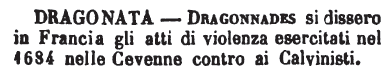 | Dragonata - Dragonnades - Dragonnades si dissero in Francia gli atti di violenza esercitati nel 1684 nelle Cevenne contro ai Calvinisti. [immagine] |