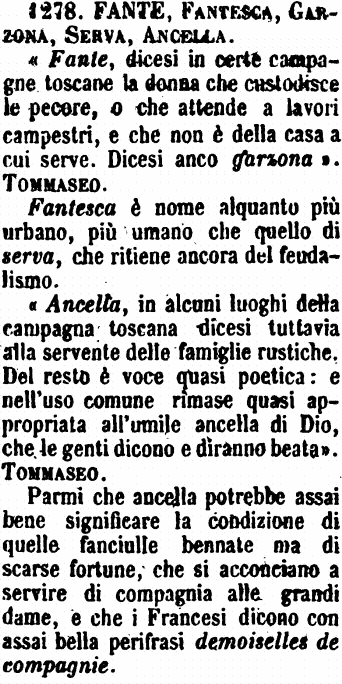 Fantesca è nome alquanto più urbano, più umano che quello di serva, che ritiene ancora del feudalismo.