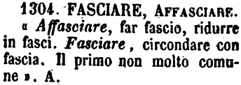 | Usando "fasciare" (*) si possono ottenere i seguenti risultati: scrosciare * = scrofa; * mere = fasciame; * mire = fasciami; * more = fasciamo. |