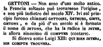 | Intrecciando le lettere di "gettoni" (*) con un'altra parola si può ottenere: * ori = geotritoni; bili * = bigliettoni. |