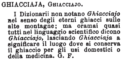 | Scartando le parti in comune (in coda oppure in capo), "ghiacciaio" si può ottenere dalle seguenti coppie: ghiacciata/iota. |