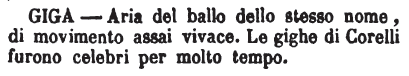 | Giga - Aria del ballo dello stesso nome, di movimento assai vivace. Le gighe di Corelli furono celebri per molto tempo. [immagine] |