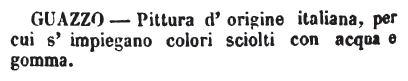 | Guazzo - Pittura d'origine italiana, per cui s'impiegano colori sciolti con acqua e gomma. [immagine] |