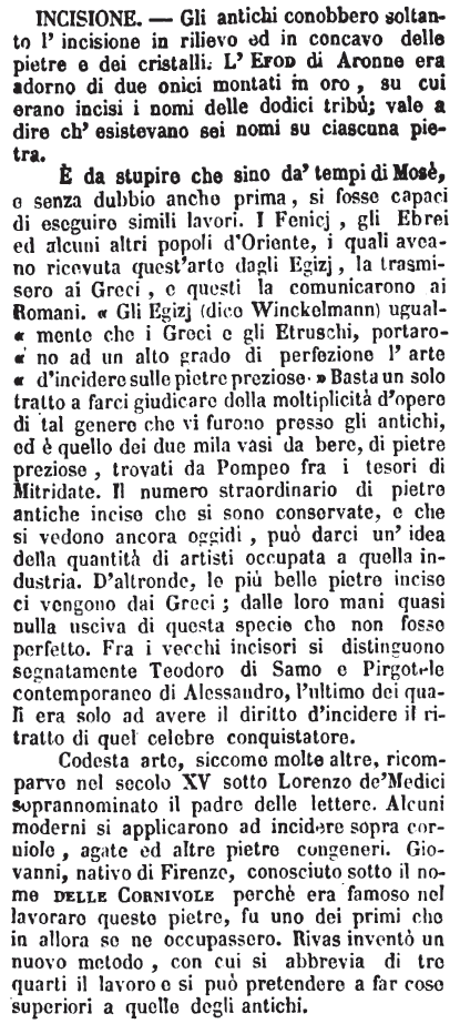 | Incisione in pietre - L'Arte d'incidere è antichissima; ma ell'è una di quelle, i di cui progressi sono stati piuttosto lenti.