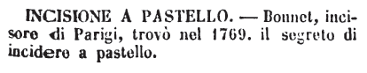 | Incisione a pastello - Bonnet, incisore di Parigi, trovò nel 1769 il segreto di incidere a pastello. [immagine] |