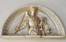 | Sino al confine di Grazia Deledda (1910): Gavina passò oltre, si fermò davanti alla sua casa gialla, alta e nuova, e battè forte la mano di ferro applicata come battente alla porta di legno scuro sormontata da una lunetta di vetri. I colpi echeggiarono nell'interno della casa che pareva deserta, e solo dopo qualche tempo apparve una vecchia serva in costume del paese, una donna che in gioventù doveva essere stata molto bella perché il suo viso, sebbene già molle, si conservava roseo e dolce, e i suoi occhi castanei, circondati di rughe, scintillavano ancora. L'Isola dell'Angelo Caduto di Carlo Lucarelli (1999): "Chi è quest'uomo", pensava il commissario e intanto lasciava correre lo sguardo dal contadino scalzo, che reggeva il carretto svuotato in fretta dal fieno per trasportare il cadavere, al brigadiere col berretto storto, all'inglese che se ne stava seduto su un sasso con Martina sulle ginocchia, a parlare fitto e piano come se non ci fosse nulla che lo riguardasse in quell'insenatura sulla spiaggia a picco sotto il tempio di Giove, stretta come la lunetta di un'unghia. La madre di Grazia Deledda (1920): Finalmente la lunetta a vetri sopra la porta s'illuminò, e la serva nera venne ad aprire, introducendolo subito nella stanza ch'egli ben conosceva. |