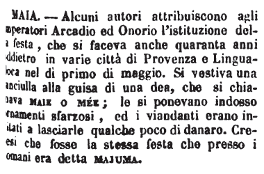 | Intrecciando le lettere di "maia" (*) con un'altra parola si può ottenere: * grò = magiaro; * rna = mariana; sol * = somalia; aver * = avemaria; ente * = emaniate; * glie = magliaie; neon * = neomania; oggi * = omaggiai; ring * = rimangia; * certe = maceriate; * cinte = maciniate; micron * = micromania; ricchi * = rimacchiai; * schermo = mascheriamo. |