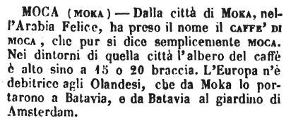 | Intrecciando le lettere di "moca" (*) con un'altra parola si può ottenere: * si = moscai; * si = moscia; * sta = moscata; * sto = moscato; doti * = domotica; * alni = malonica; * itti = mitotica; * daci = modaccia; orni * = ormonica; osti * = osmotica; ziti * = zimotica; * eteri = meteorica; * ipati = miopatica; * nonna = monocanna; * torri = motocarri; saldi * = salmodica; seini * = semioncia; scoli * = smoccolai; estati * = emostatica; marchi * = marmocchia; ... |