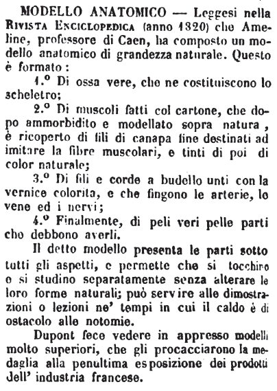 | Modello anatomico - Leggesi nella Rivista Enciclopedica (anno 1320) che Ameline, professore di Caen, ha composto un modello anatomico di grandezza naturale. Questo è formato: