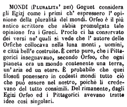 L'isola del giorno prima di Umberto Eco (1994): “Non chiamate a soccorso i misteri dell'Incarnazione, signor abate,” motteggiava. “La vostra santa romana chiesa vi ha insegnato che questa nostra palla di fango sia il centro dell'universo, il quale le gira attorno facendole da menestrello e suonandole la musica delle sfere. Attenzione, vi fate spingere troppo contro la fonte, vi state bagnando la falda, come un vecchio ammalato del mal della pietra... Ma se nel grande vuoto si aggirano infiniti mondi, come disse un grande filosofo che i vostri pari hanno bruciato a Roma, moltissimi abitati da creature come noi, e se tutte fossero state create dal vostro Dio, che ne faremmo allora della Redenzione?”