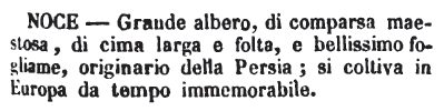 | Noce - Grande albero, di comparsa maestosa, di cima larga e folta, e bellissimo fogliame, originario della Persia; si coltiva in Europa da tempo immemorabile. [immagine] |