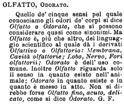 | Intrecciando le lettere di "olfatto" (*) con un'altra parola si può ottenere: sa * = solfatato. |