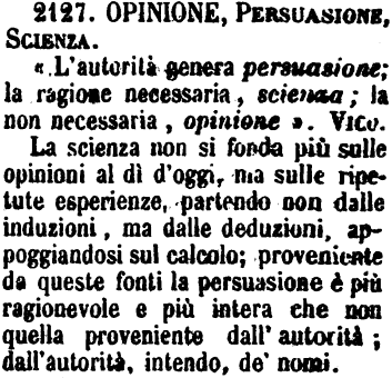 | Opinione, Persuasione, Scienza - «L'autorità genera persuasione; la ragione necessaria, scienza; la non necessaria, opinione». Vico.
