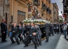 Il Marchese di Roccaverdina di Luigi Capuana (1901): La processione s'inoltrava lentamente: confraternite con gli stendardi avvolti all'asta, frati Cappuccini, frati di Sant'Antonio, frati Minori conventuali, preti in cotta e stola nera, canonici con mozzetta di lutto, tutti coi torcetti accesi in mano, salmodianti; e dietro, sul cataletto, il cadavere, scoperto, con le mani in croce, in cotta e stola, e col berretto a tre spicchi in testa, che spiccava su la coltre nera di broccato orlata con frangia di argento; corto, sparuto, col viso giallo, con gli occhi socchiusi e il naso affilato, sembrava che tentennasse il capo a ogni passo dei portatori.