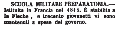 | Scuola militare preparatoria - Istituita in Francia nel 1814. È stabilita a la Fleche, e trecento giovanetti vi sono mantenuti a spese del governo. [immagine] |