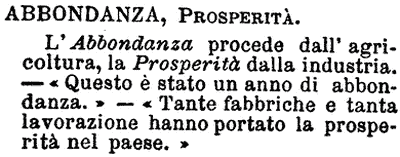 | Abbondanza, Prosperità - L'Abbondanza procede dall'agricoltura, la Prosperità dalla industria. - «Questo è stato un anno di abbondanza.» - «Tante fabbriche e tanta lavorazione hanno portato la prosperità nel paese.» [immagine] |