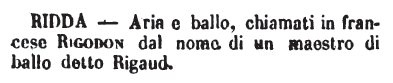 | Ridda - Aria e ballo, chiamati in francese rigodon dal nome di un maestro di ballo detto Rigaud. [immagine] |