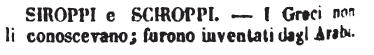 | Siroppi, Sciroppi - I Greci non li conoscevano; furono inventati dagl Arabi. [immagine] |