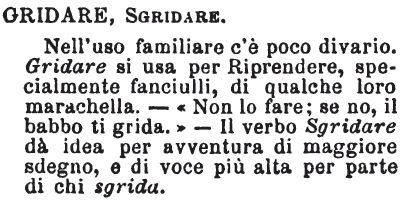 | Usando "sgridare" (*) si possono ottenere i seguenti risultati: * areata = sgridata; * areate = sgridate; * areati = sgridati; * areato = sgridato; * rendo = sgridando; * evi = sgridarvi; * resse = sgridasse; * ressi = sgridassi; * reste = sgridaste; * resti = sgridasti; * retina = sgridatina; * retine = sgridatine; * ressero = sgridassero. |