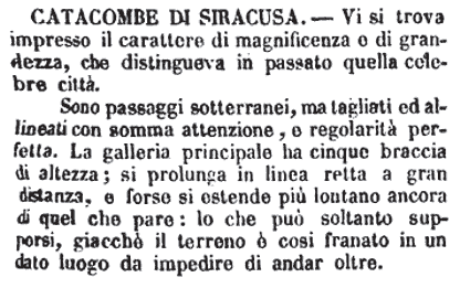 | Catacombe di siracusa - Vi si trova impresso il carattere di magnificenza e di grandezza, che distingueva in passato quella celebre città.