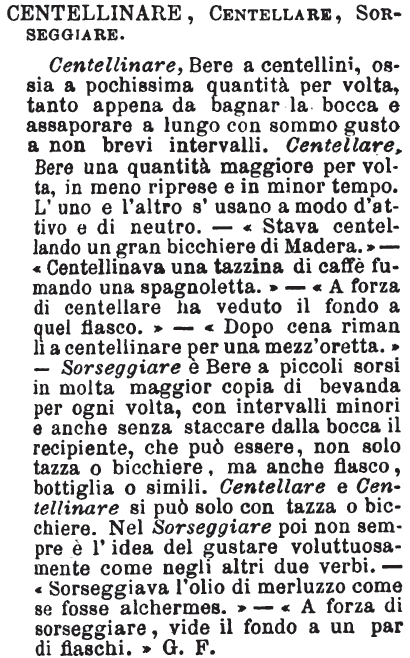 | »» Vedi anche la pagina frasi con sorseggiare per una lista di esempi. |