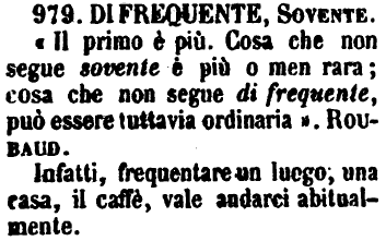Di frequente, Sovente - «Il primo è più. Cosa che non segue sovente è più o men rara; cosa che non segue di frequente, può essere tuttavia ordinaria». Roubaud.
