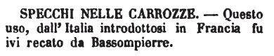| Specchi nelle carrozze - Questo uso, dall'Italia introdottosi in Francia fu ivi recato da Bassompierre. [immagine] |