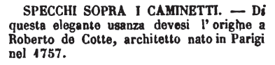 | Specchi sopra i caminetti - Di questa elegante usanza devesi l'origine a Roberto de Cotte, architetto nato in Parigi nel 1757. [immagine] |