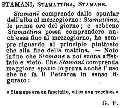| »» Vedi anche la pagina frasi con stamani per una lista di esempi. |