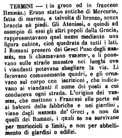 | Intrecciando le lettere di "termini" (*) con un'altra parola si può ottenere: sa * = sterminai; dea * = determinai; sera * = sterminerai; sere * = sterminerei; * azoni = terminazioni. |