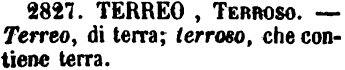 | Terreo, Terroso - Terreo, di terra; terroso, che contiene terra. [immagine] |