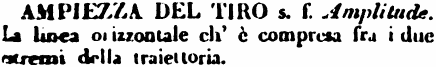 | Ampiezza del tiro - s. f. Amplitude. La linea orizzontale ch'è compresa fra i due estremi della traiettoria. [immagine] |