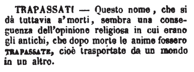 | Usando "trapassati" (*) si possono ottenere i seguenti risultati: * noti = trapassano; * areati = trapassare; * viti = trapassavi; * voti = trapassavo; * mentiti = trapassamenti. |