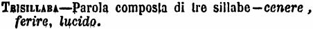 | Usando "trisillaba" (*) si possono ottenere i seguenti risultati: sillabate * = tetri; * tetri = sillabate. |