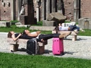 | Le piccole libertà di Lorenza Gentile (2021): Continuo a rivivere la scena come sarebbe dovuta andare: mi vedo arrivare alla stazione in tempo, salire sul treno, issare il trolley, salutare Victor prima che si chiudano le porte. Partire. Parigi che si allontana, i binari illuminati dai lampioni nel nero della notte, campi e paesi francesi. Attraversare le gallerie, stendermi sul letto e cercare di dormire, all'alba indovinare i primi cartelli in italiano immersi nella nebbia, Torino, poi Milano. Scendere dal treno, correre in ufficio, pranzare con un dorayaki ai fagioli rossi, dormire da Bernardo. La novella del buon vecchio e della bella fanciulla di Italo Svevo (1929): Per colpa sua essa aveva camminato le vie col campanello di richiamo attaccato ai piedi oppure, addirittura legata ad un trolley, era scivolata su quel cerchio, offrendosi agli occhi e alle mani degli uomini. E non importava che la giovinetta ch'era stata a trovarlo il giorno prima, non avesse saputo destare nel suo animo alcun sentimento di compassione o di affetto. Essa, ora, era fatta così e bisognava salvarla mutandola in modo da farla ridivenire la buona, cara fanciulla, che — purtroppo! — era stata sua e che egli ora amava per la sua debolezza che chiamava carezze e protezione. La vita in tempo di pace di Francesco Pecoraro (2013): Lui il suo trolley lo chiama mentalmente «l'Abarth», lo ama, è suo e porta il suo marchio di non-curanza e disprezzo per le eleganze e le sciccherie da viaggio. A parte i ritorni all'isola, viaggia sempre e solo per lavoro, perché ormai odia il viaggio e tutto il resto, ma si trova bene negli aeroporti e sugli aerei. |
