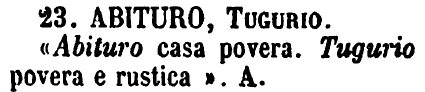 | Abiturio, Tugurio - «Abituro casa povera. Tugurio povera e rustica». A. [immagine] |
