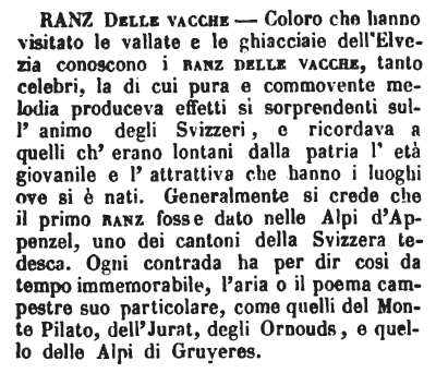 Malombra di Antonio Fogazzaro (1881): Parean saluti al sole che aveva levato il suo raggio dall'erba e saettava la cima del sasso bianco. Il tremolìo diffuso delle campanelle s'avvicinava da tutte le parti all'alpe di C... accovacciata in un seno erboso sotto le scogliere. Le vacche vi si avviavano a file, a drappelli, accodandosi le une alle altre sugli angusti sentieri, trottando giù dai brevi pendii, sbrancandosi lente nei prati, fermandosi di tratto in tratto a levar il muso e muggire. |